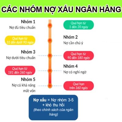 - Trong trường hợp vay vốn ngân hàng mà chậm hoặc không thanh toán tiền vay, chậm hoặc không thanh toán chi phí sử dụng trong thẻ tín dụng, mất khả năng thanh toán các khoản vay như vay mua nhà, vay mua xe dẫn đến tài sản thế chấp bị xử lý, gán nợ.. bạn sẽ bị liệt vào danh sách nợ xấu. Và khi rơi vào nợ xấu nhóm, nợ quá hạn khách hàng sẽ bị các ngân hàng từ chối cho vay.